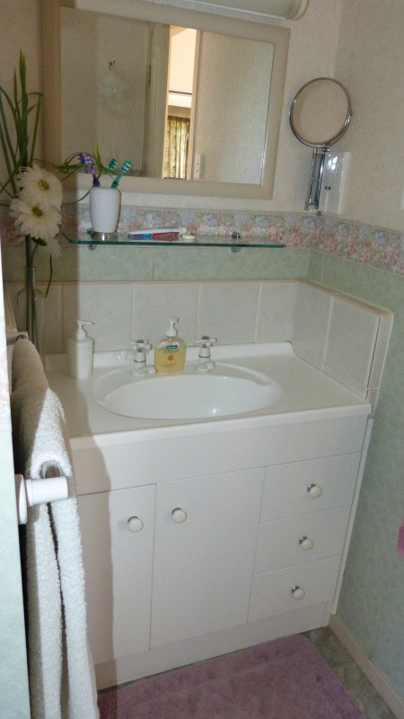 Bathrooms There are two bathrooms inside, one on the ground floor and one on first levels, and one outdoor shower with hot and cold water. Upper bathroom: Ground floor bathroom: hand basin next door in toilet room